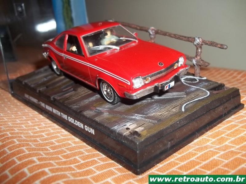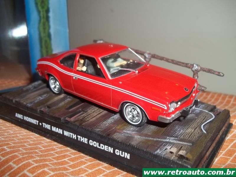 A miniatura 1/43 bem detalhada do AMC Hornet numa das melhoras cenas de ação do filme O Homem da Pistola de Ouro