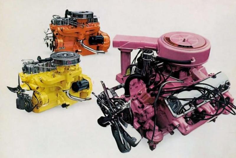 Eram oferecidos os seis cilindros 232 e 258 com 100 e 110 cavalos respectivamente e os com oito cilindros em “V” 304 e 360 com 150 e 175 cavalos.