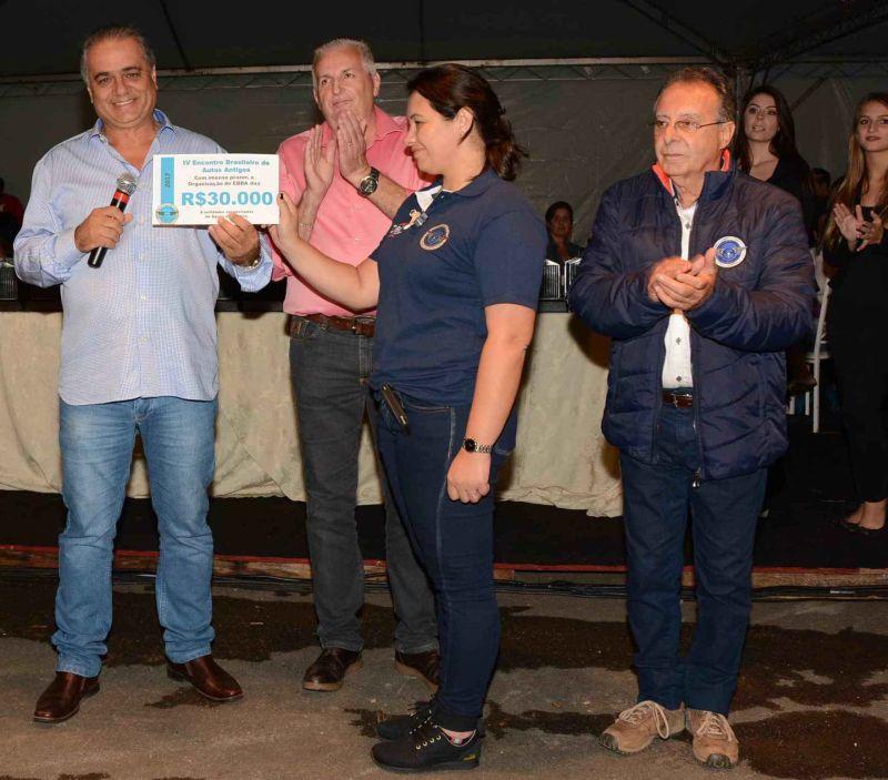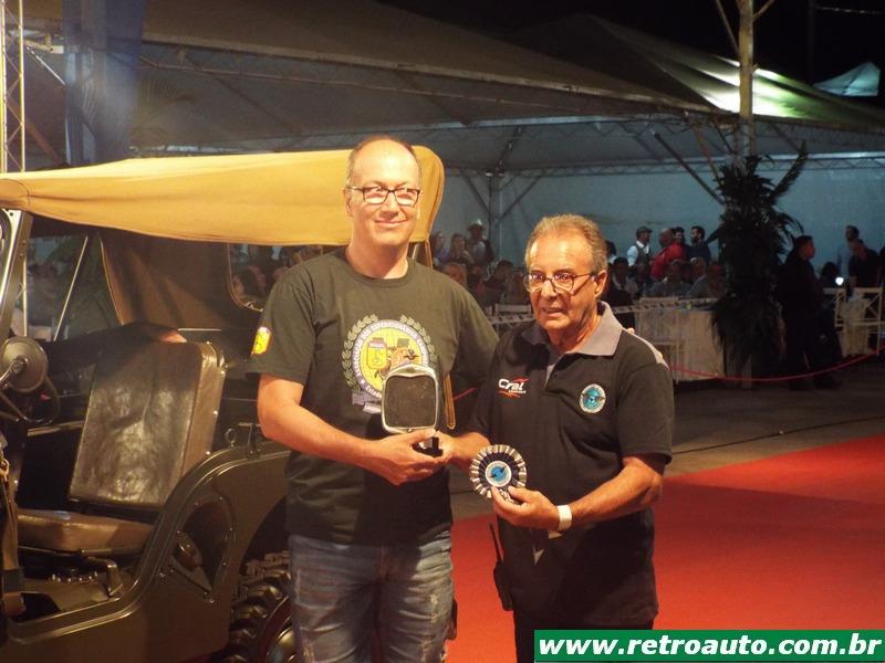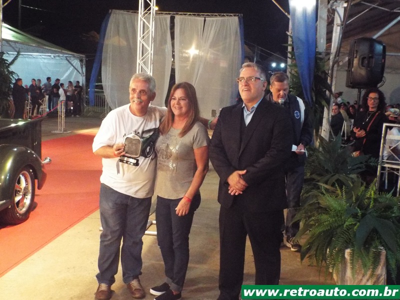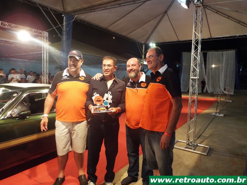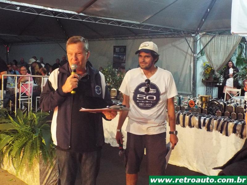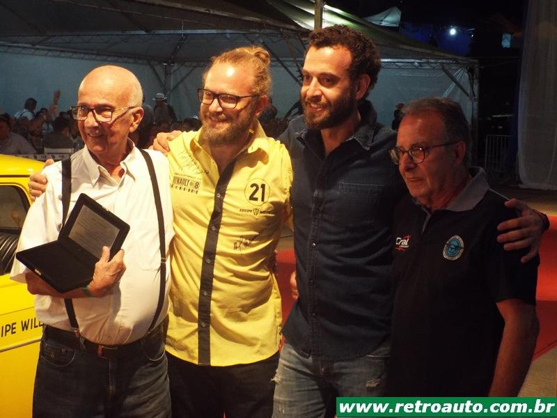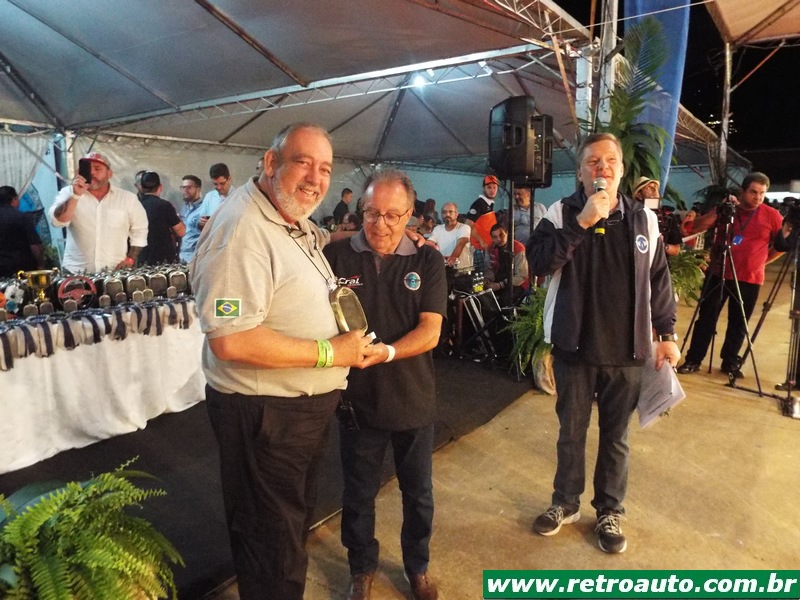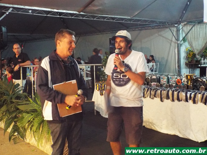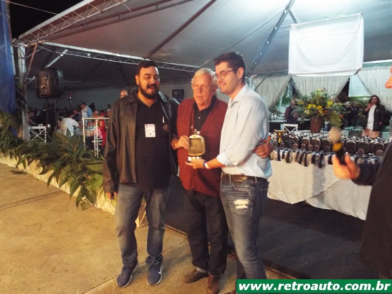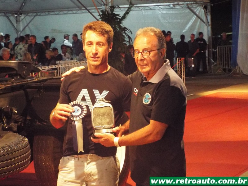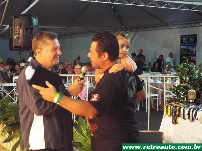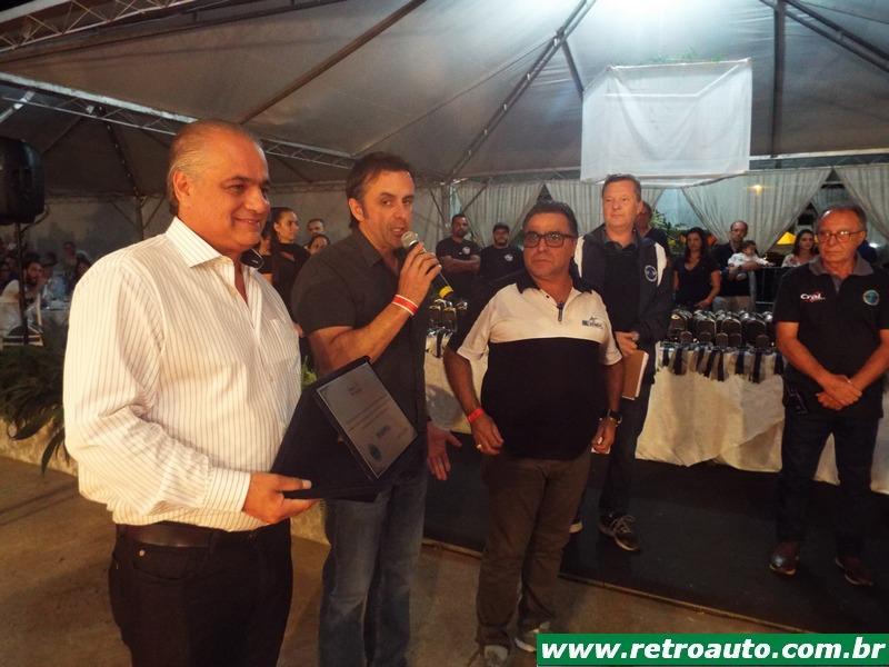 Mais de 70 carros foram premiados na noite de segunda-feira, dia 30 de abril. A premiação foi muito bem coordenada por Fábio de Cillo Pagotto que é um especialista e autor de vários livros sobre automóveis. Abaixo premiando o jornalista, colecionador e fundador e organizador da corrida de calhambeques Pé na Tábua em Franca, Tiago Songa.