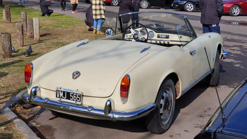 Alfa Romeo Giulia GT 1600 Spider. Tinha 1.570 cm³, 106 cavalos à 6.000 rpm, era alimentado por um carburador duplo em posição invertida, marca Solex, cambio de cinco marchas e pesava 885 quilos. Velocidade máxima de 172 km/h