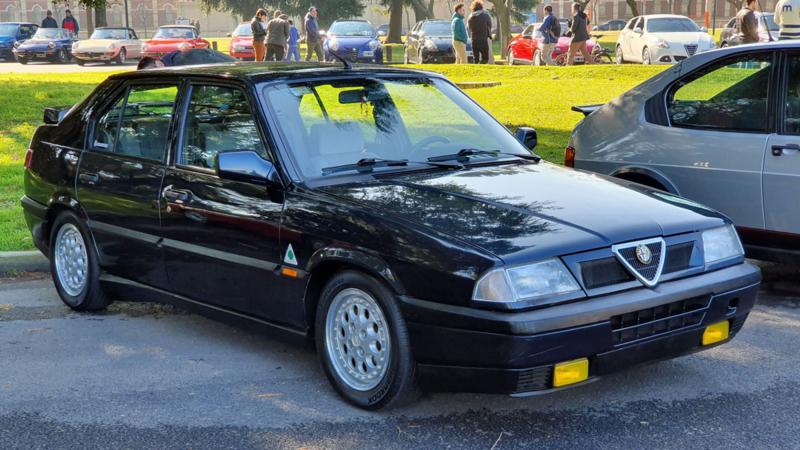 Alfa Romeo 75. Era equipado com motor quatro cilindros em linha com duplo comando 1,6 litros e 1,8 litros turbo e 2 ,0 litros. E mais atraente um V6 com 2,5 e outro com 3.,0 litros. Era um modelo muito apreciado pelos Carabinieri (famosa polícia especial italiana). Foi produzido entre 1985 e 1992. O modelo abaixo é um 2.0 Twin Spark