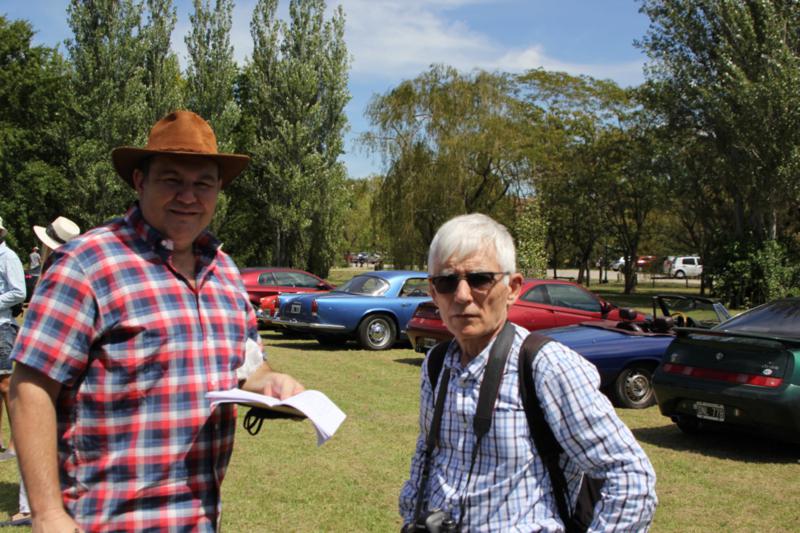 Estacionar nunca es tarea fácil en estos eventos, uno no se da cuenta cuántos autos son 50 hasta que hay que ordenar su estacionamiento, pero de a poco, con una acertada participación de los encargados de controlar la tarea, con calma y una mínima dosis de paciencia, los motores se fueron apagando, los amigos se fueron bajando de los autos y nuestras amadas machina quedaron ordenadas sobre la alfombra verde a disposición para que los jurados pudieran hacer su tarea. Piersanti y Tiullous recorrieron, observaron, pidieron abrir puertas, capots y baúles, preguntaron y se retiraron a meditar sus decisiones. Conductores y acompañantes fuimos yendo hacia “el otro lado” del caserón, donde se habían instalado las mesas para el almuerzo, en parte en la galería y en parte debajo de un extenso sombreado en el parque. El calor ya había comenzado a hacerse presente, pero había tan buen ánimo que hasta llegó a no importarme que la mesa de la CD y los jurados, en la que me correspondía sentarme, fuera la única de la galería a la que no le funcionaba el ventilador de techo.