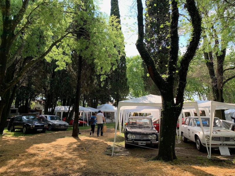 Estacionar nunca é uma tarefa fácil nestes eventos, não se percebe que são 50 carros até que seja necessário ordenar o seu estacionamento, mas aos poucos, com uma participação empenhada dos encarregados de controlar a tarefa, com calma e com uma dose mínima de paciência, os motores foram desligados, os amigos desceram dos carros e nossas queridas máquinas foram dispostas no tapete verde, um belo gramado, à disposição para que os jurados pudessem fazer o dever de casa. Piersanti e Tiullous caminharam, observaram, pediram para abrir portas, capôs e porta-malas , fizeram perguntas e retiraram-se para refletir sobre suas decisões. Colecionadores e acompanhantes foram para "o outro lado" da mansão, onde as mesas haviam sido postas para o almoço, parte na galeria e parte sob uma ampla sombra no parque.