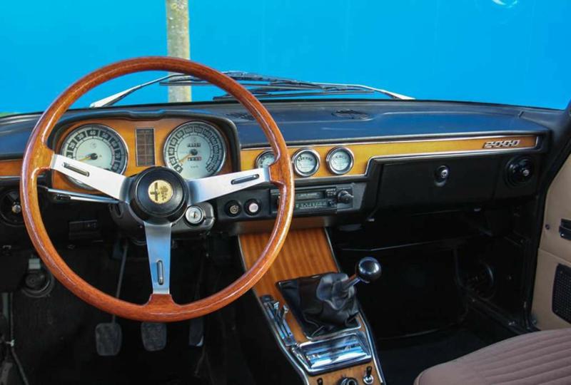 Só o pedal do acelerador era suspenso. O de embreagem e freio tinham acionamento com hastes vindas do assoalho. As reclamações eram muitas, pois eram duros. Para pernas musculosas .... Os bancos tinham desenho bonito e eram confortáveis. Atrás havia um descansa braço central era removível. Por dentro, como era característica da marca, o elegante se misturava ao esporte. Sem distorções e tudo com muito bom gosto ao estilo italiano.