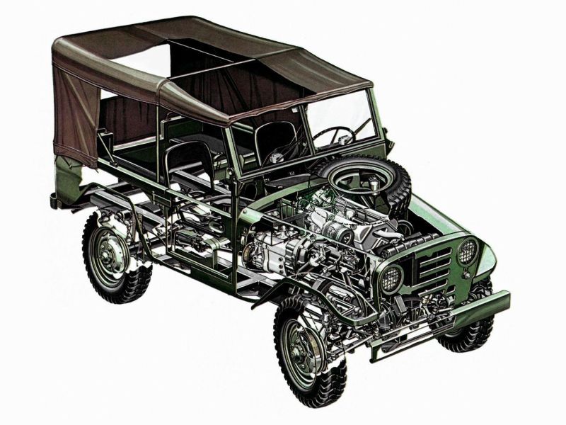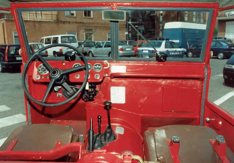 Na versão militar o pneu sobressalente ficava sobre o capô. Na versão civil atrás dos bancos dianteiros. Perpendicular a estes havia mais dois bancos bem rústicos para abrigar mais quatro passageiros. Piquenique completo para a família saborear com vinho Chianti e espaguete.