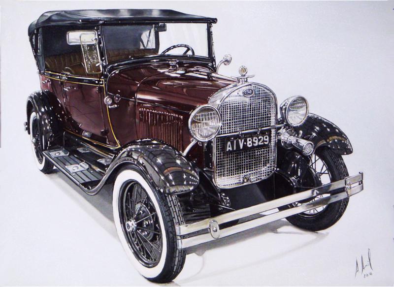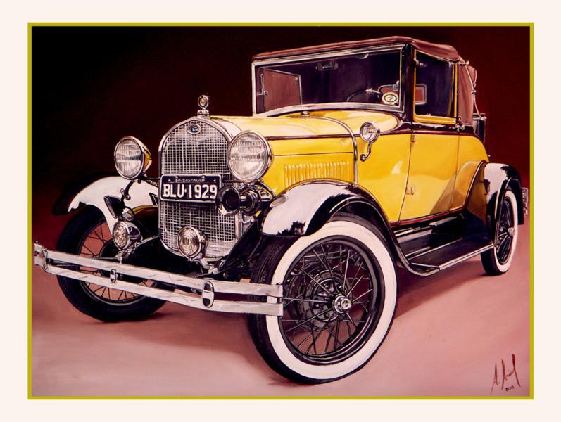 Ford modelo A Standard - Pintura executada em óleo sobre tela medindo 80 x 60 cm