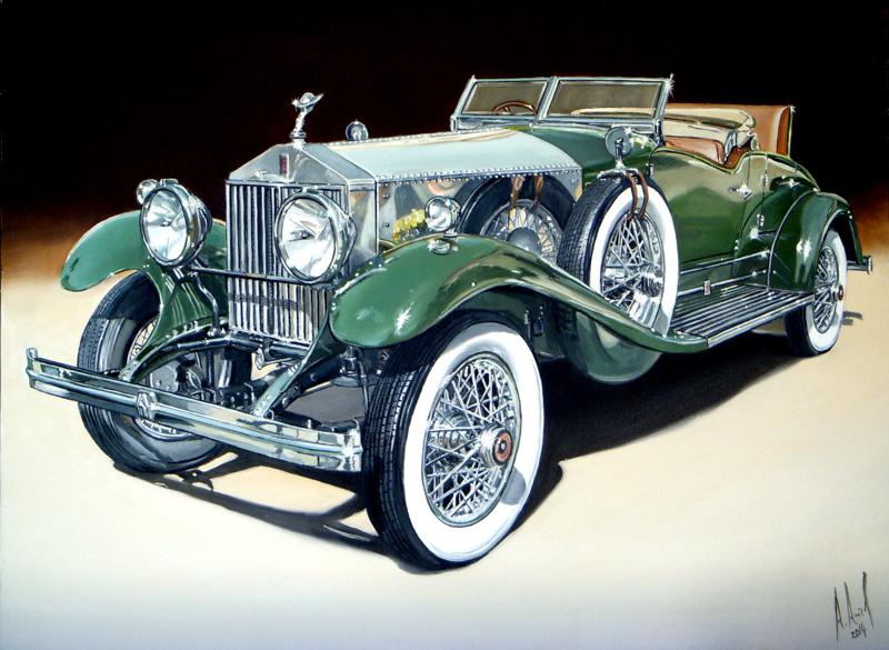 Rolls-Royce Rolls-Royce Phantom 1927 com carroceria Henley Roadster - Pintura executada em óleo sobre tela medindo 60 x 80 cm