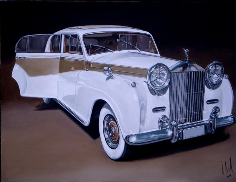 Rolls-Royce Phantom IV - Pintura executada em óleo sobre tela medindo 60 x 80 cm