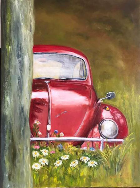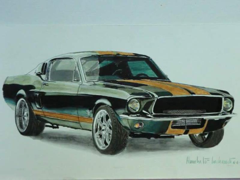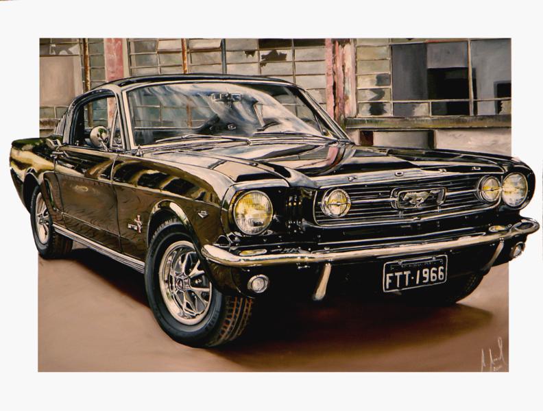 Ford Mustang fastback 1966 - Pintura executado em óleo sobre tela medindo 60 x 80 cm