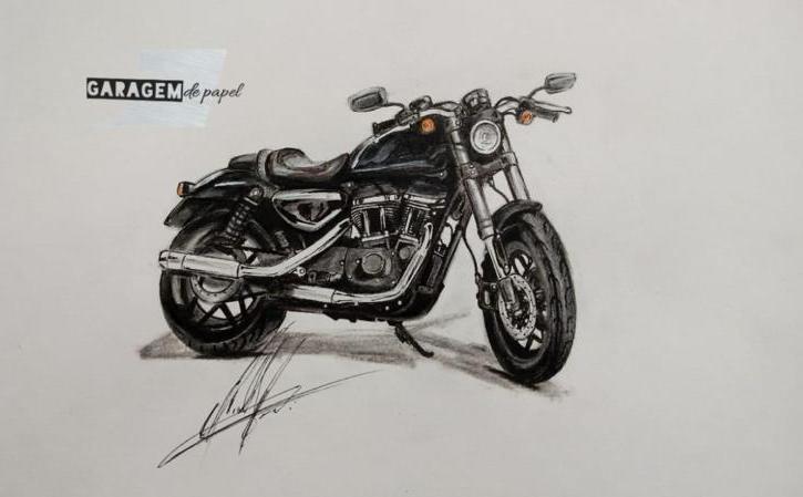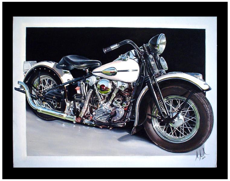 Motocicleta Harley 1953 501 Cc - Pintura executada em óleo sobre tela medindo 80 x 60 cm