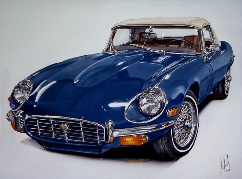 Jaguar E-Type V12 - Pintura executada em óleo sobre tela medindo 60 x 80 cm