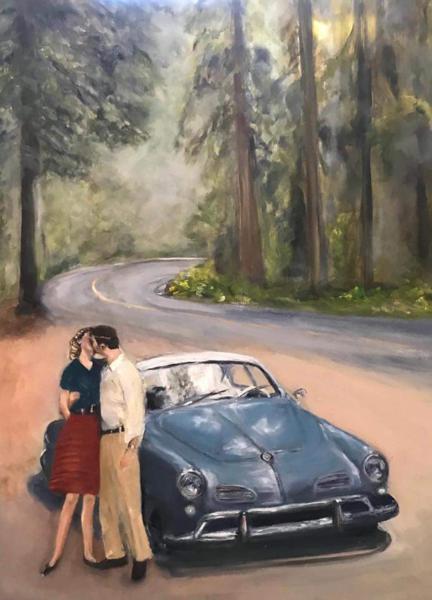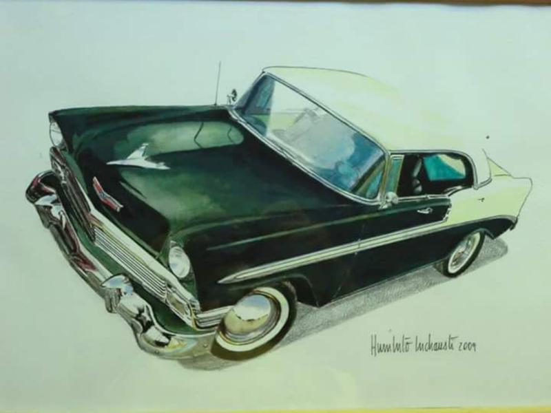 Ford Tunderbird 1956 - Pintura executada em óleo sobre tela medindo 60 x 80 cm