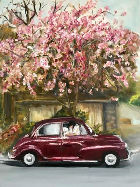 Abaixo um Mercedes 540 K 1929 - Pintura executada em óleo sobre tela medindo 140 x 100 cm
