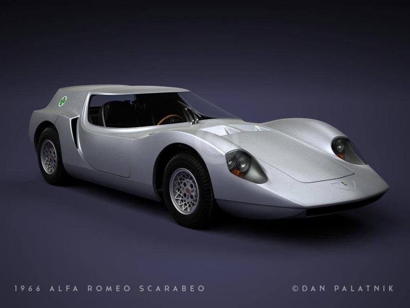 Alfa Romeo Scarabeo 1966. Conceito apresentado no Salão de Paris, França, em 1966. Obra de Giuseppe Busso e Orazio Satta Puliga para a Alfa Romeo com um design se Sergio Sartorelli da Officine Stampaggi Industriali.