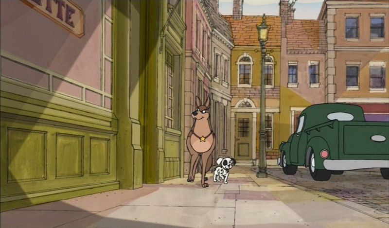A Guerra dos Dálmatas (One Hundred and One Dalmatians) foi um desenho animado de Walt Disney que fez enorme sucesso em todo o mundo sendo lançado nos Estados Unidos em 1961 com duração de 79 minutos. O sucesso foi mundial e a qualidade da animação para a época era perfeita em detalhes. Abaixo um dos filhotes ao lado de um cão Capitão sobre a calçada ao lado uma picape Ford F-Series da década de 50. Este belo desenho deu origem ao filme.