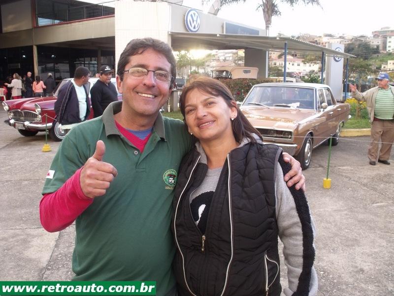 Cláudio Eduardo Mazzoni, presidente da Sociedade do Carro Antigo de Barbacena e esposa que organizaram o evento...