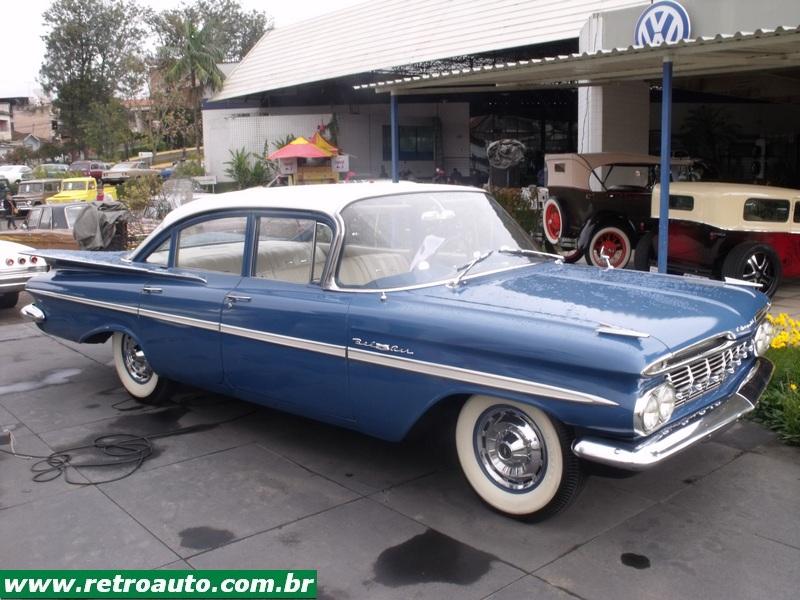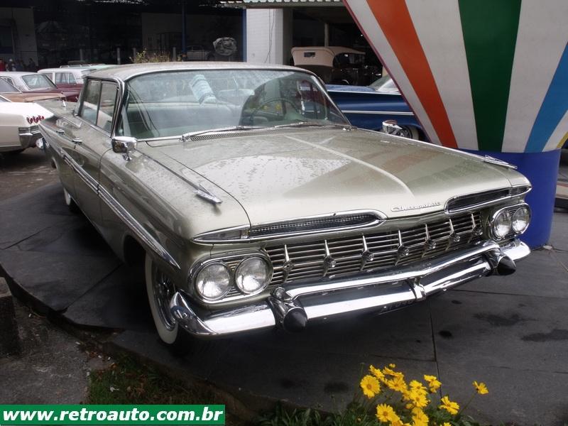 Chevrolet Impala 1959. Havia também a versão com colunas sedã e o modelo duas portas, a conversível duas ports e a Station com quatro portas. a picape El camino e uma rara versão Panel Delivery. Vários motores seis cilindros em linha e também uma grande gama V8.