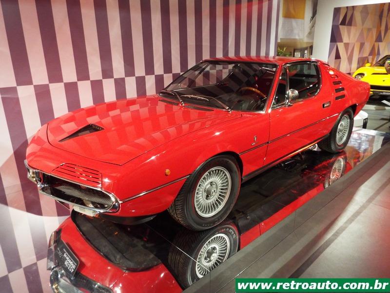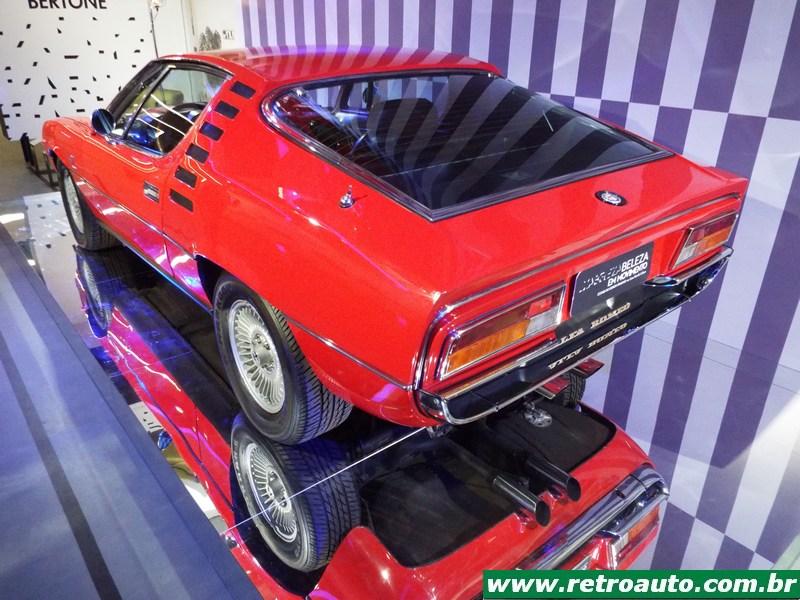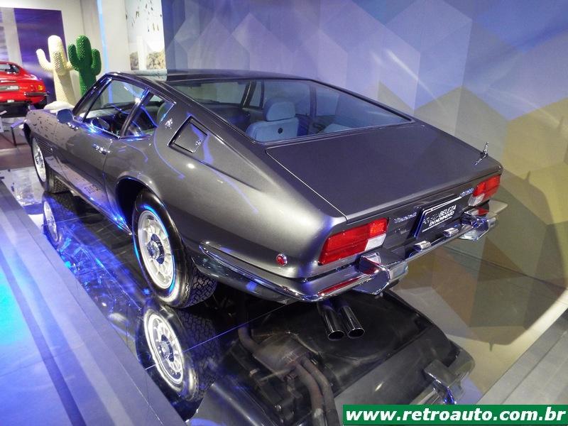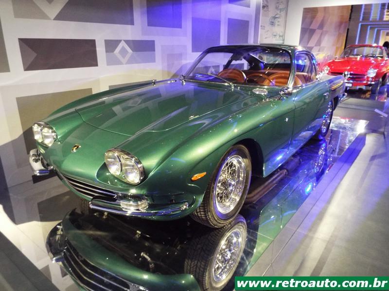 Um Lamborghini 400 GT de 1969, uma evolução do modelo de 1963 desenhado por Franco Scaglione que também foi autor de vários modelos Alfa Romeo, mas também da NSU alemã, modelo Sport Prinz, do ATS 2500 GT e do esportivo Intermeccanica Italia convertible. O 350 GT e o 400 GT foram os primeiros carros esportivos do produtor de tratores Ferruccio Lamborghini. Seu chassi tubular era reforçado com aço e sua carroceria em alumínio. Tinha suspensão independente nas quatro rodas que usavam pneus 205 x 15. Seu motor V12 à 60 graus,era fundido em liga de alumínio como sua caixa de cinco velocidades marca ZF. Era em posição longitudinal dianteira. Tinha 3.463 cm³, potência de 280 cavalos(320 para o modelo 400) e velocidade máxima de 260 km/h (versão 400 GT). Era alimentado por seis carburadores Weber 40. Tinha 4,46 metros de comprimento, 1,73 de largura e 1,23 de altura. A carroceria do 400 GT era em aço estampado e pesava 1.420 quilos