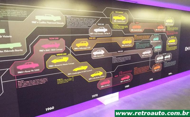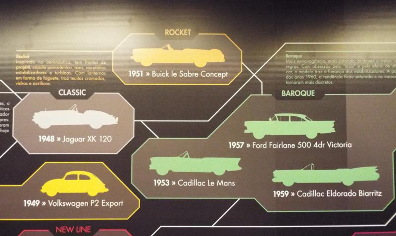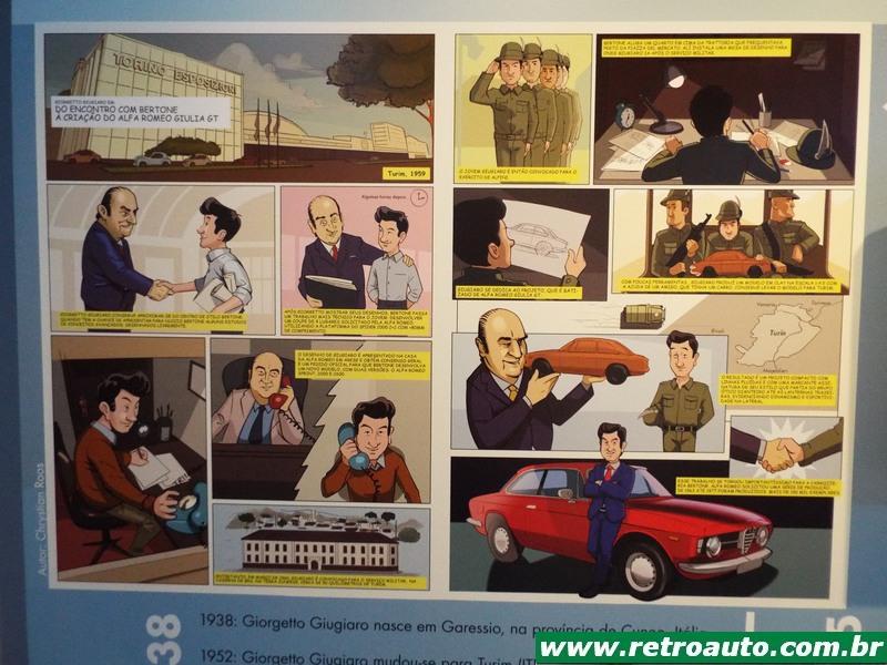 Na parede oposta aos carros um pouco da história. A maioria são modelos de marcas italianas. Os carros da da Carroceria Touring Superleggera. Um dos modelo foi o Aston Martin DB5. Saiba mais