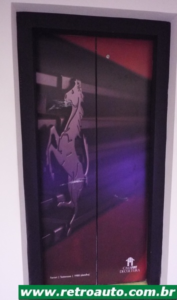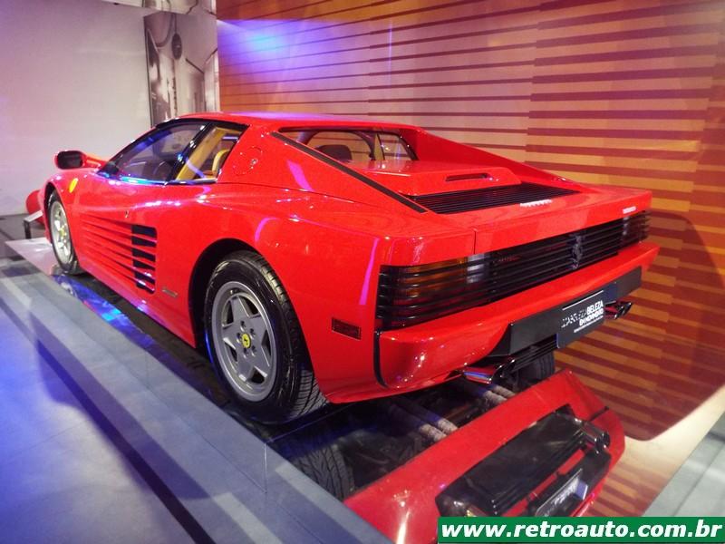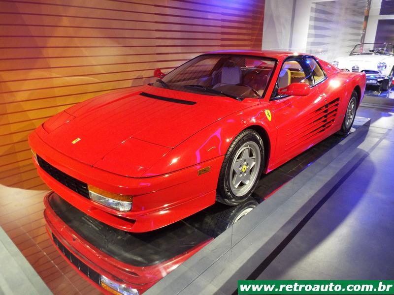Bela Ferrari Testarossa 1988. Este nome era em homenagem ao Ferrari 250 TR que foi fabricado entre 1956 a 1961, para competições e que tinha a tampa do cabeçote na cor vermelha (Testa Rossa). O modelo de 1988 tinha 4.9 litros de cilindradas, 12 cilindros opostos, 48 Válvulas DOHC (Double Overhead Camshaft) , ou seja, duplo Comando de Válvulas no Cabeçote) e potência de 390 cavalos. Era alimentado por uma injeção mecânica multiponto marca Marelli. Tinha tração traseira e cambio de cinco marchas. Usava pneus 225/50 VR na frente e 255/50 VR na traseira. Media 4,48 metros de comprimento, 1,97 de largura e 1,13 de altura. Seu peso era de 1.506 quilos. Fazia de o a 100 km/h em 5,6 segundos e velocidade final de 290 km/h.