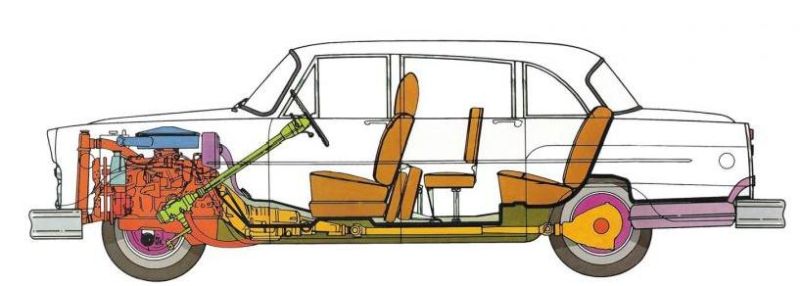 O sedã, três volumes, quatro portas, três vidros laterais, mais famoso na cor amarela e com a faixa lateral com quadradinhos em preto e branco. As portas de trás se abriam num ângulo de quase 90 graus. Fácil acesso para os usuários, o banco traseiro acomodava muito bem três passageiros. Não havia briga de joelhos batendo uns nos outros. Seu motor dianteiro de seis cilindros em linha, de origem Chevrolet, de comando de válvulas lateral, tinha 142 cavalos. Sua cilindrada era de 3.769 cm³ e a taxa de compressão de 8,5:1. Era alimentado por um carburador Rochester. Tinha opção de cambio de três marchas mecânico ou automático. Em ambos a alavanca ficava na coluna de direção. Seu tanque tinha capacidade para 87 litros de gasolina e seu consumo urbano era de 6,0 quilômetros por litro. Típico dos automóveis daquele país naquela época.