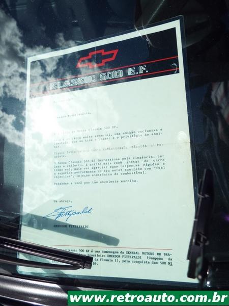 Em 1990 a linha contava com injeção eletrônica monoponto. Era uma das grandes novidades no modelo Chevrolet Monza 500 EFi. As iniciais EF (Emerson Fittipaldi) homenageavam o nosso bi-campeão mundial de Fórmula Um e vencedor das 500 Milhas de Indianápolis em 28 de maio de 1989 com um Penske PC19 com motor Chevrolet. O carro inicialmente tinha duas opções de cores: Preto nobre (abaixo) e vermelho Rodes. Estava com novo spoiler dianteiro e um discreto aerofólio o traseiro. Molduras laterais traziam a inscrição 500 EF