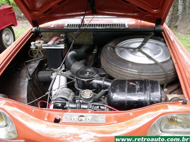 O estepe ficava na frente junto ao motor deixando o porta-malas livre e neste o espaço para bagagens era muito bom.