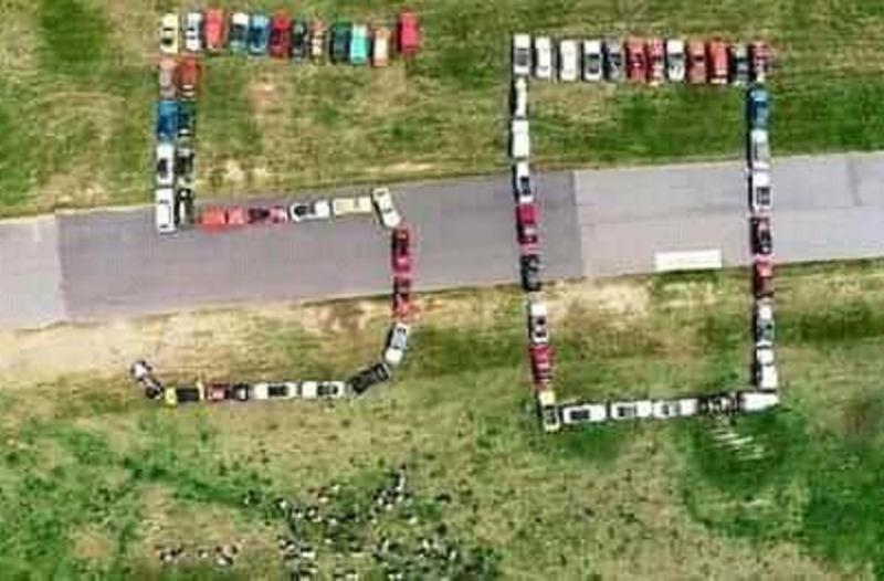 Luego de varios giros, llegó el momento de parar y hacer la foto aérea del evento. Para ello se reunieron a un costado de la pista una gran cantidad de autos que se alinearon para formar el número 50 y desde el cielo, un dron fijaría este momento para la posteridad.
