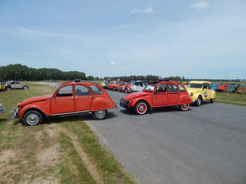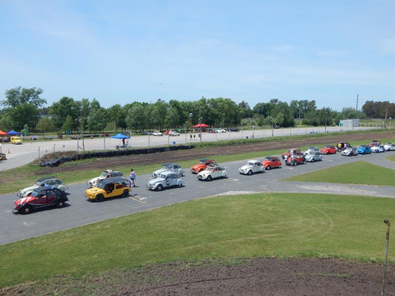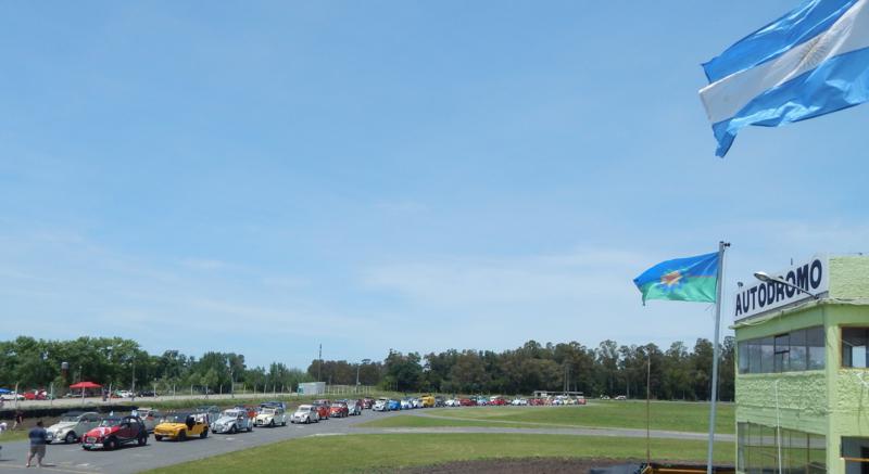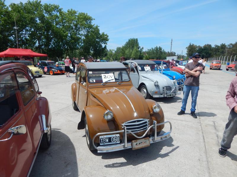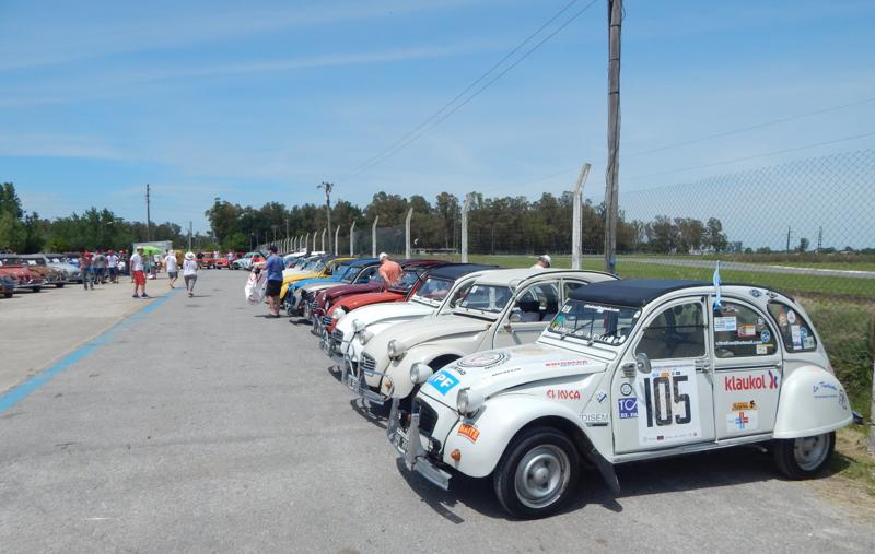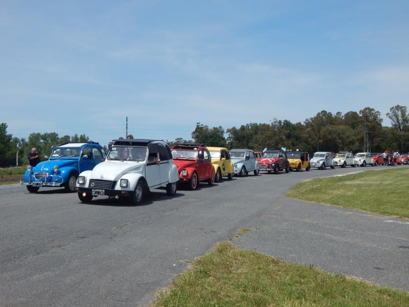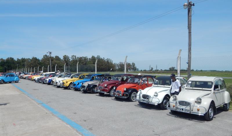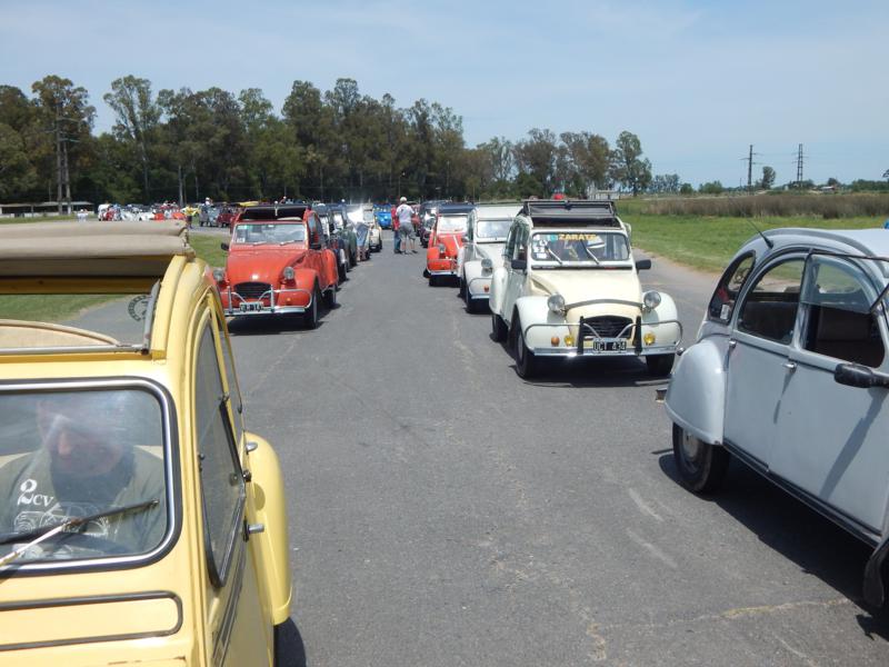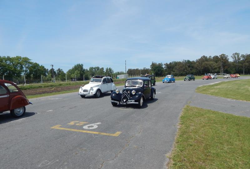 Na pista do autódromo de Dolores Na manhã de domingo, os mais de 100 carros reunidos lá se alinharam no parque fechado, exibindo os diferentes espécimes que chegavam dos quatro pontos cardeais, o que mostrava uma cronologia na evolução do modelo ano a ano. Por volta do meio-dia, todos os carros deram algumas voltas no Autódromo, onde não havia intenção de correr ou competir, basta se unir em homenagem ao amado 3cv, certamente o primeiro carro de muitos argentinos e que ainda desperta grandes sentimentos. Após várias curvas, chegou a hora de parar e tirar a foto aérea do evento.
