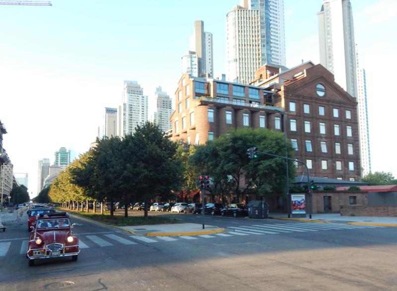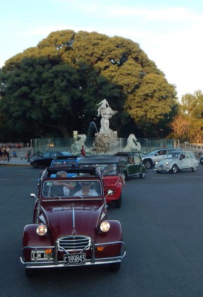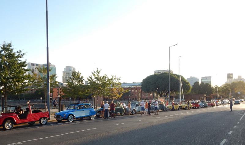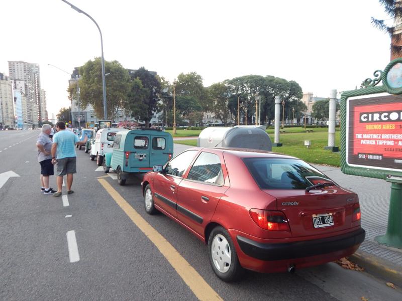 Pocos minutos después, el 3cv M28 de Javier Jauregui iniciaba la caravana, abriéndose paso por la Av. Dorrego, recorriendo gran parte de la mítica Av. Corrientes hasta llegar al Obelisco porteño y virando por una de sus diagonales hacia la Plaza de Mayo-Casa de Gobierno. Al rodearla el rumbo estuvo fijado hacia el barrio más nuevo que tiene la ciudad: Puerto Madero. Después de dar una vuelta y haciendo algunas paradas para fotos, la caravana se dirigió hacia la monumental escultura de Las Nereidas, emplazada en la costanera sur.