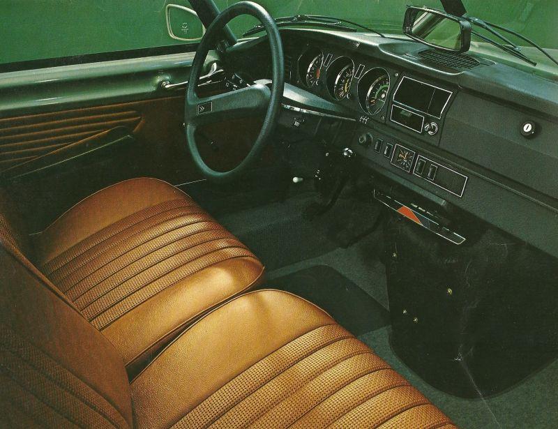 Por dentro mantinha a discrição. Os bancos inteiriços eram confortáveis, e como opcionais, podiam receber veludo ou couro. Verdadeiras poltronas. Os dianteiros eram reclináveis e na versão Pallas o assento tinha até nove posições de regulagem.