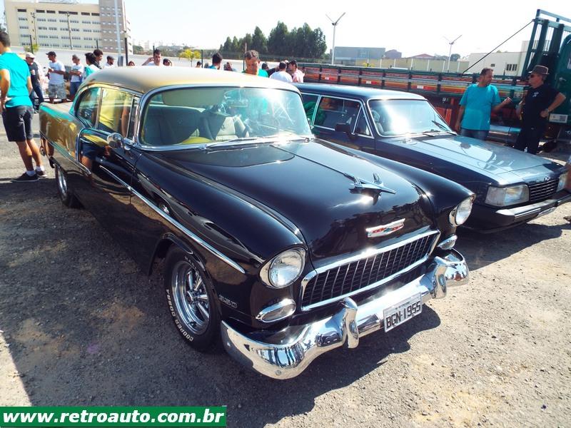 Chevrolet Bel Air 1955. Faz parte do trio de glória das gerações de 1955, 56 e 57 com várias opções de motores seis cilindros em linha e V8.