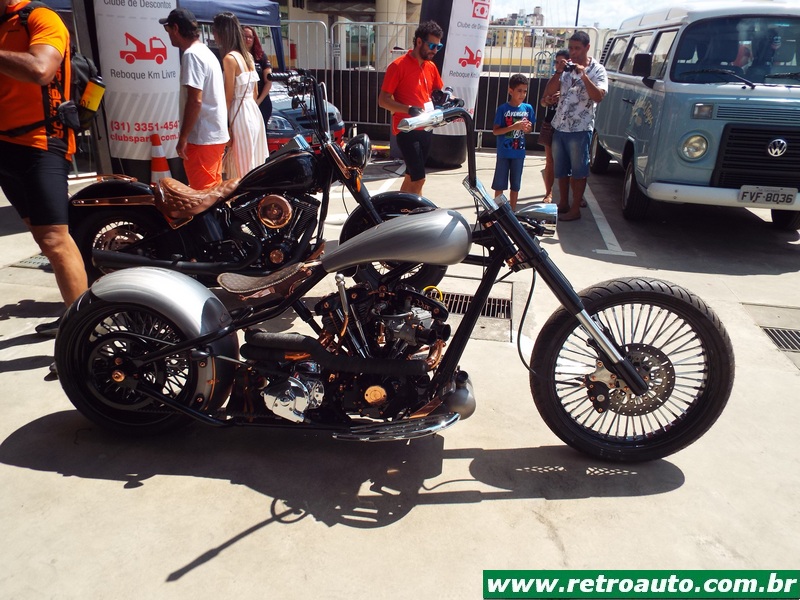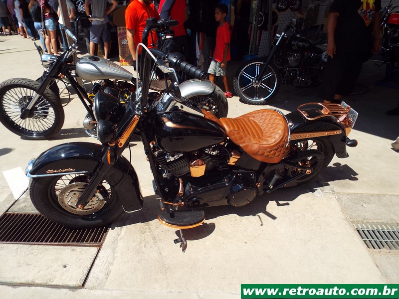 Motocicletas de marcas famosas como a lendária Harley-Davidson, vários modelos estavam lá com guidões mais altos ou mais baixos, acentos modificados, assim como pneus muito largos na traseira, quadro e tanques harmonizados, estilo Chopper ou Café Racer para todos os gostos.