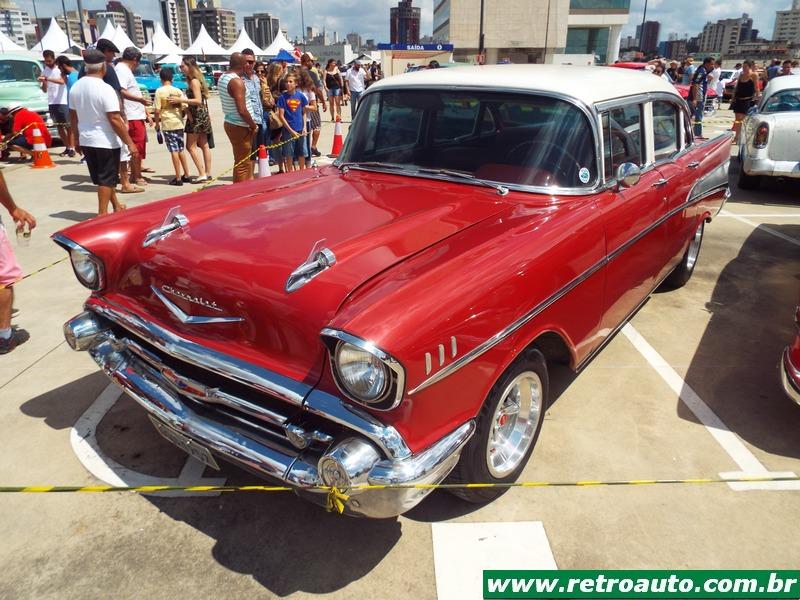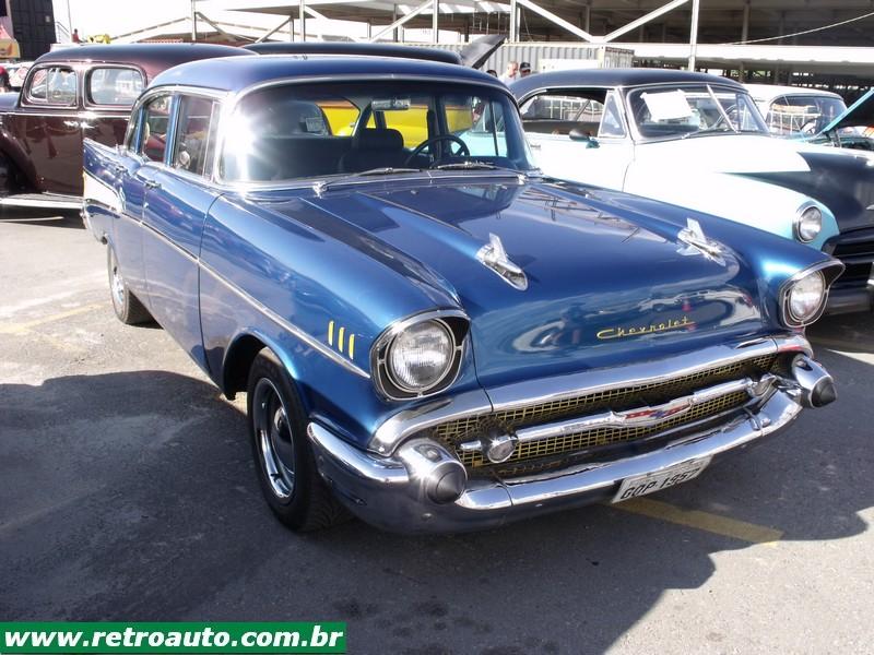Chevrolet Bel Air 1957. Após a remodelação da linha em 1955, os modelos deste ano, 1956 e 1957 fizeram enorme sucesso nos Estados Unidos e noutros países do mundo. Sedã quatro portas, cupê, conversível, perua duas portas (Nomad) e quatro portas. Dois motores com seis cilindros em linha (210 e 230 polegadas cúbicas e vários V8 com potências consideráveis.