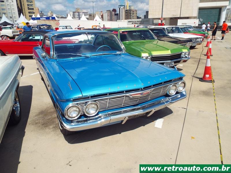 Chevrolet Impala 1961. Havia também a carroceria quatro portas, cupê, Station Wagon e a picape El Camino em 1959 e 1960. A concorrente da picape Ranchero da Ford. Motores com seis cilindros em linha e vários V8. O modelo SS é facilmente reconhecido por suas bandeiras quadriculadas tanto no capô quanto na lateral. Um dos motores era o V8 283 (4.637 cm³) com 185 cavalos ou opcional com 290 cavalos. Outro muito apreciado era o V8 348 (5,7 litros) e 315 cavalos.