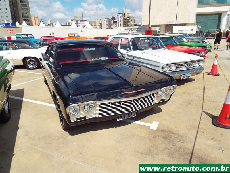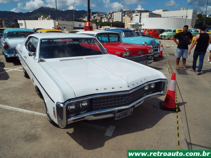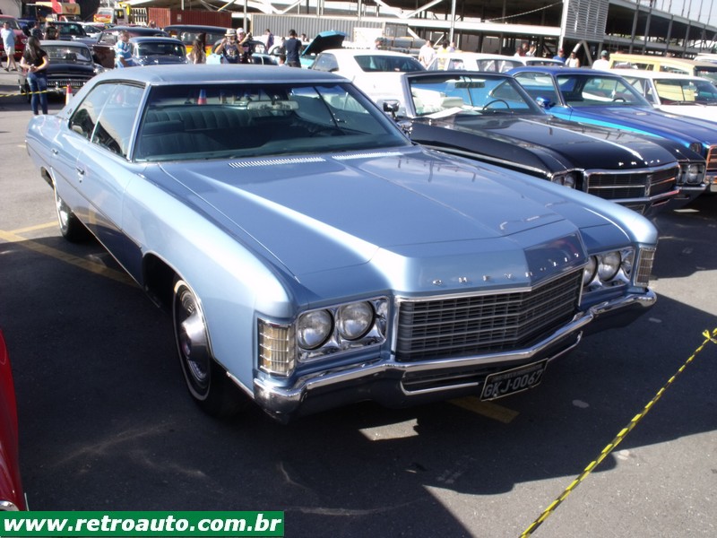 Chevrolet Impala 1970 Custom numa rara configuração cupê existente aqui no Brasil. Seu motor V8 454 (7.439 cm³) podia desenvolver no pacote padrão 360 cavalos e como opcional 450! Cobria 1/4 de milha em 13,9 segundos chegando à 165 km/h. Ótima arrancada!