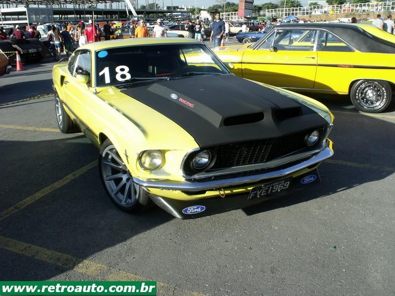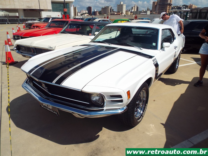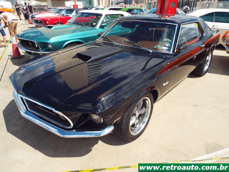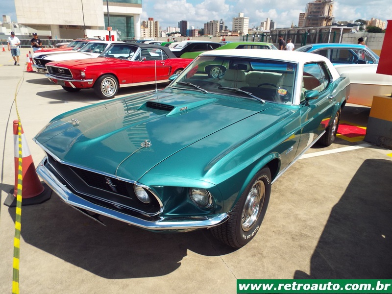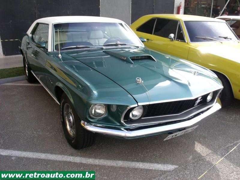 Lindo Ford Mustang 1969/1970 Hardtop. A entrada de ar (Raim Air) não é falsa e serve para dar mais "fôlego" ao cavalo. A versão Boss fastback 302 polegadas cúbicas ou 429 polegadas cúbicas tinham fôlego de sobra. A 429 (7.030 cm³) contava com 375 cavalos com quatro carburadores duplos.