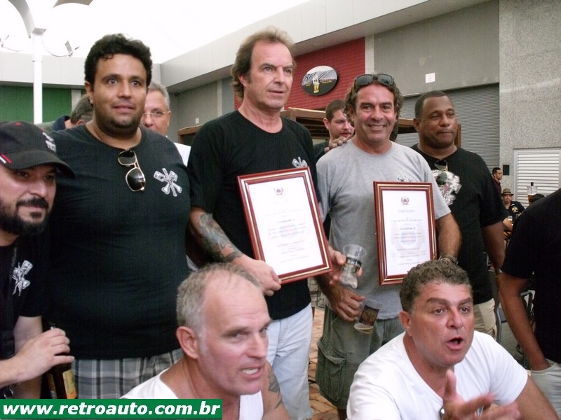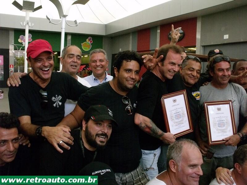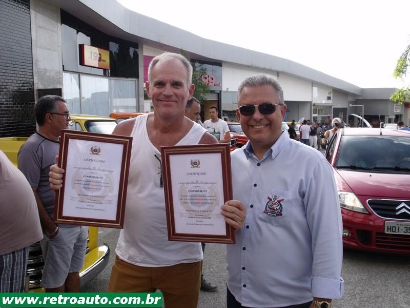 Lá o presidente Bruno Steinberg e seus companheiros receberam certificados do Presidente da Associação Mineira de Antigomobilismo (AMA) Antônio do Monte Furtado Filho.