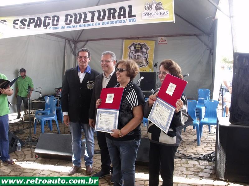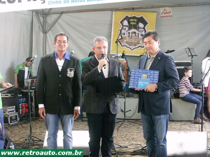 O prefeito de Congonhas José de Freitas Cordeiro recebe um certificado da Associação Mineira de Antigomobilismo