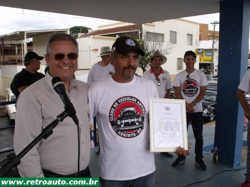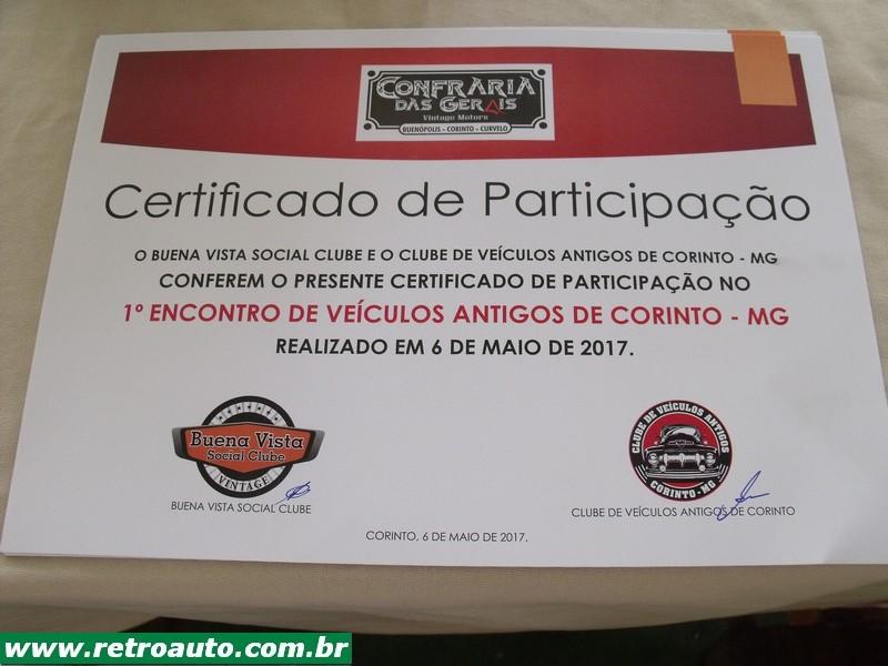 Estavam lá clubes Carros Antigos de Pompéu, Buena Vista Social Clube Vintage, Confraria das Gerais Vintage Motors que reúne os clubes de Buenópolis, Corinto e Curvelo, Clube do Fusca e Autos Antigos de Montes Claros, Volkswagen Clube de Diamantina, Clube de Veículos Antigos de Corinto, Veículos Antigos de Buenópolis, Car Clássico de Curvelo (C.C.C.) e Hot Rat Antigos Lowrider dentre outros. Todos os presente receberam este belo certificado do Clube de Corinto.