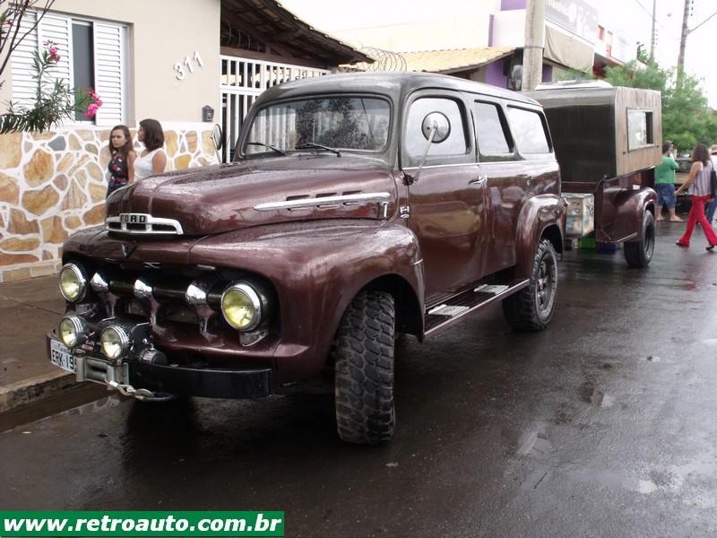 Furgão Ford F-1 fabricada entre 1948 e 1952 com motor seis cilindros em linha Flathead Six e Flathead V8. Detalhe para o reboque muito bem feito