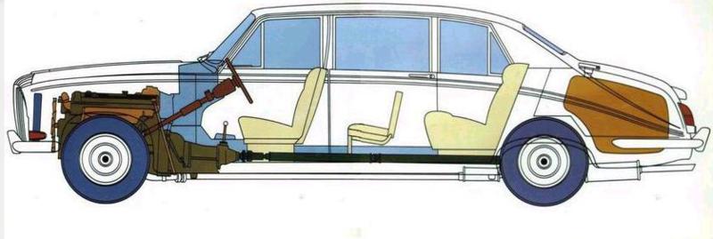 Nos bancos de trás, muito confortáveis e com revestimento de tecido de alta qualidade, os passageiros tinham a disposição comandos diversos nos apoia braços. Ainda mesas de leitura, bar refrigerado e televisor. Não faltavam banquetas para os eventuais seguranças. Transportava com muita classe sete passageiros. Em 1969 era lançada a versão Landaulet que também tinha muito charme por conta da abertura da capota de lona para os assentos traseiros.