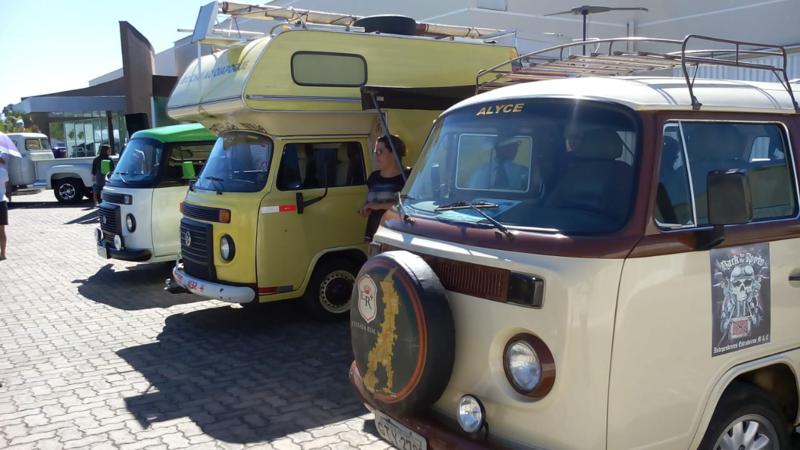 Um confronto de utilitários. O da direita é uma belo exemplar da Kombi "Camper" motor Home