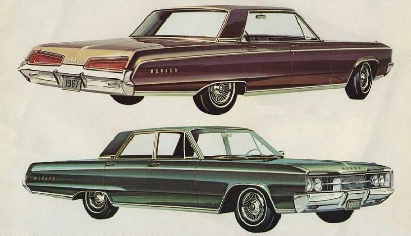 Compartilhando a mesma plataforma deste era lançado o Dodge Mônaco em 1965. Como quase todos americanos na época oferecia uma linha completa de carrocerias. Havia duas portas e quatro sem coluna central, o sedã quatro portas com colunas, a perua Station Wagon e o conversível. Encaixava-se na categoria Full Size americana com 5,42 metros de comprimento, 3,07 de entre-eixos, largura de 2,02, altura de 1,43 metros. Pesava 1.764 quilos para o sedã, mas a perua 1.943 que tinha capacidade para cinco ou sete passageiros e o conversível 1.780 que tinha a estrutura mais rígida para suportar melhor as tensões. Sua frente tinha grade cromada em forma de osso e quatro faróis circulares. Inserido no parrudo para-choque cromado faroletes de sinalização. Portava estrutura monobloco sendo que a suspensão dianteira era independente com molas helicoidais e amortecedores telescópicos. Atrás recebia eixo rígido e feixe de molas. Como quase todos carros americanos na época, em curvas mais fechadas e velozes, havia uma inclinação importante da carroceria e a traseira desgarrava com facilidade. Os freios eram a tambor, sendo que na frente havia assistência hidráulica. Como opcional havia freios à disco.