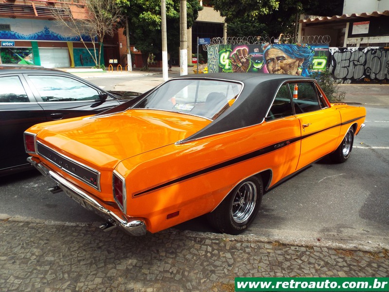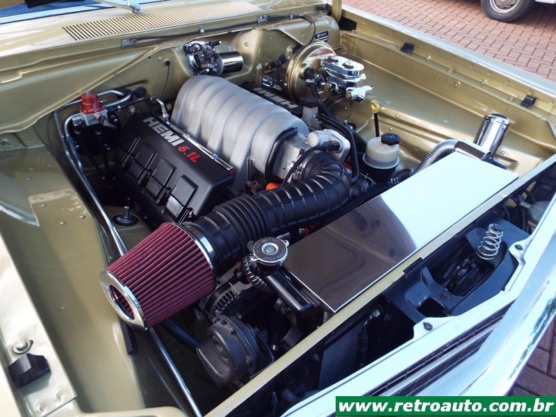 Este cupê 1971 tem mecânica moderna dos V8 Charger e Challenger americanos e decoração GT Sport. O motor que ilustra esta o início desta matéria pertence a este muito veloz!