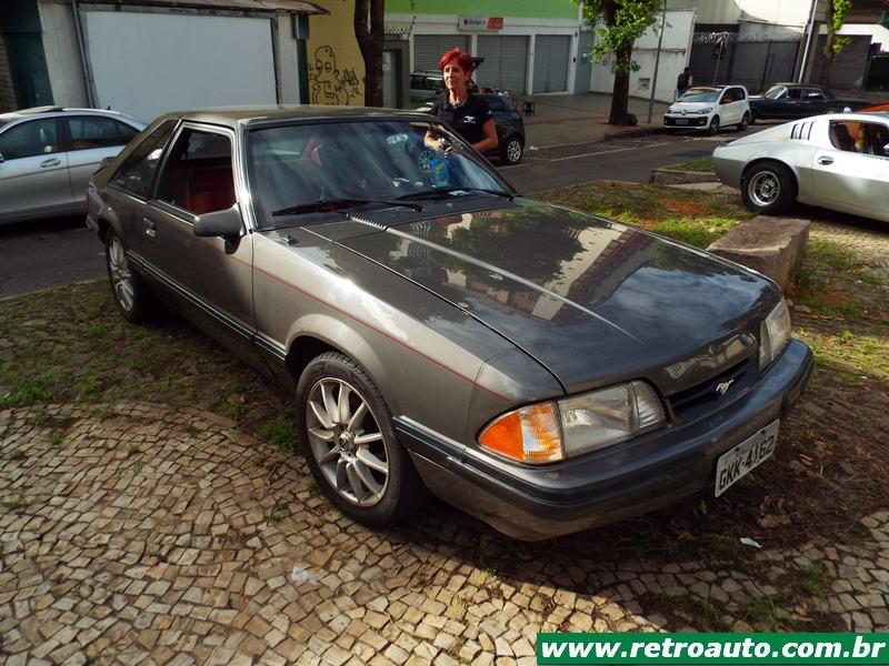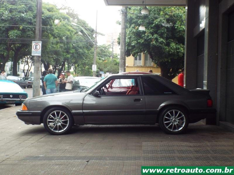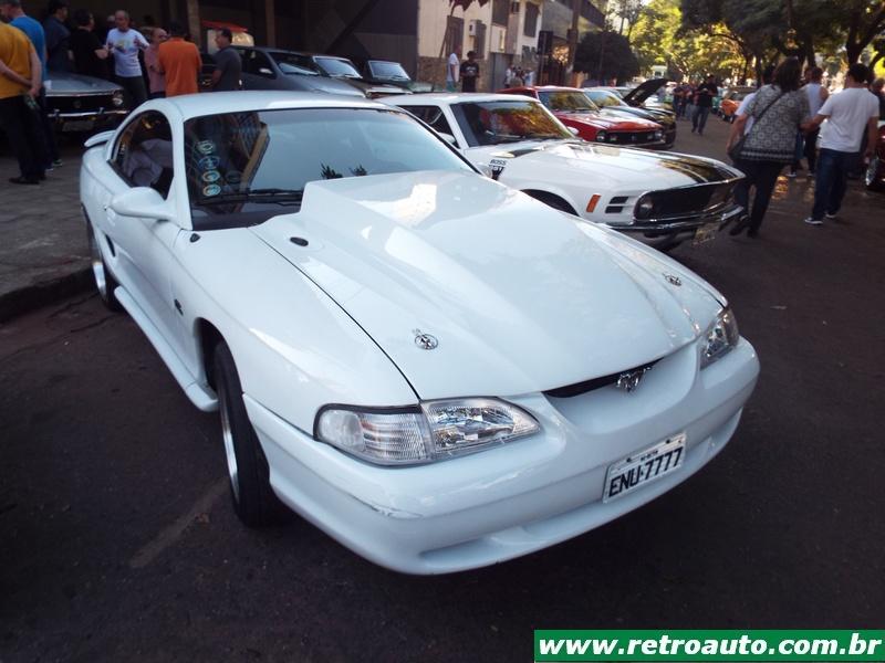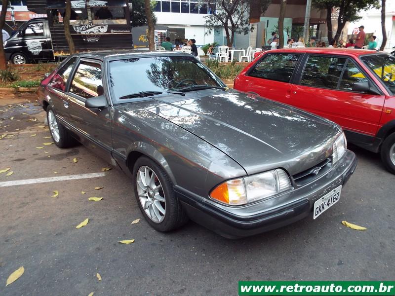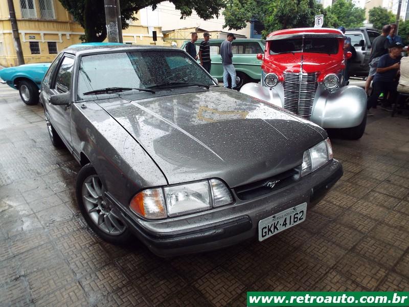 Ford Mustang sempre presente nos bons eventos. É um cupê da terceira geração (1979-1993). Era o preferido do ator Paul Walker falecido em 2013 e famoso pelos filmes Velozes e Furiosos. Este era um modelo compacto também e o preferido do falecido ator Paul Walker por ser mais leve que os anteriores. Este carro pertence,um hatchback, a colecionadora Glorinha Beltrão. O primeiro dono foi seu pai que conservou manuais, peças, etc. Um carro ímpar! Também estava disponível a versão conversível. Este é um GT 5.0. Em seu interior podia receber, como as anteriores, caixa automática (apenas para os V8) ou mecânica. A versão SVT Cobra, lançada em 1993 estava disponível apenas com cambio manual. As versões Cobra e Cobra R V8 5.0 SOHC tinha 238 cavalos tina câmbio manual de 5 marchas. Sua velocidade final era de 235 km/h. A versão 2,3 OHC com turbo compressor obtinha 118 cavalos à 5.200 rpm e chegava à 185 km/h. Veja a coleção