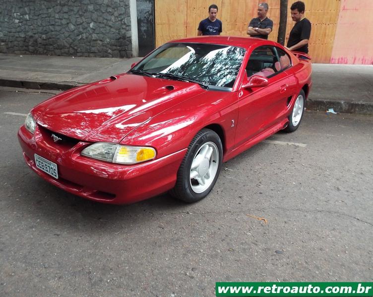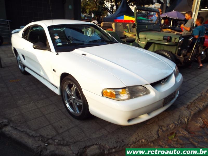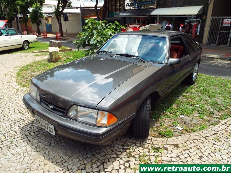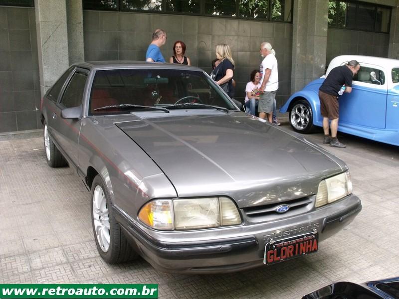 Ford Mustang cupê da terceira geração (1979-1993). Era o preferido do ator Paul Walker falecido em 2013 e famoso pelos filmes Velozes e Furiosos. Este era um modelo compacto também e o preferido do falecido ator Paul Walker por ser mais leve que os anteriores. Este carro pertence,um hatchback, a colecionadora Glorinha Beltrão. O primeiro dono foi seu pai que conservou manuais, peças, etc. Um carro ímpar! Também estava disponível a versão conversível. Este é um GT 5.0. Em seu interior podia receber, como as anteriores, caixa automática (apenas para os V8) ou mecânica. A versão SVT Cobra, lançada em 1993 estava disponível apenas com cambio manual. As versões Cobra e Cobra R V8 5.0 SOHC tinha 238 cavalos tina câmbio manual de 5 marchas. Sua velocidade final era de 235 km/h. A versão 2,3 OHC com turbo compressor obtinha 118 cavalos à 5.200 rpm e chegava à 185 km/h.