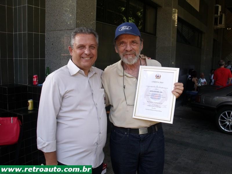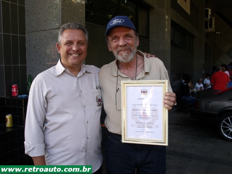 Este entregou a Rodolfo um certificado homenageando o evento e também a Rodolfo um dos fundadores, junto com Carlinhos Sá que sempre está em todas as edições sempre recebendo muito bem seus convidados independente do clube. Os primeiros encontros V8 eram na Praça da Estação na década de 80. Muito honrado Rodolfo foi entregar/compartilhar o certificado com Carlinhos em seu tradicional encontro nas terças a noite na Agência BR Imports em Belo Horizonte. O certificado do evento está hojena estante de troféus de Carlinhos em sua agência de carros na Avenida Raja Gabaglia.