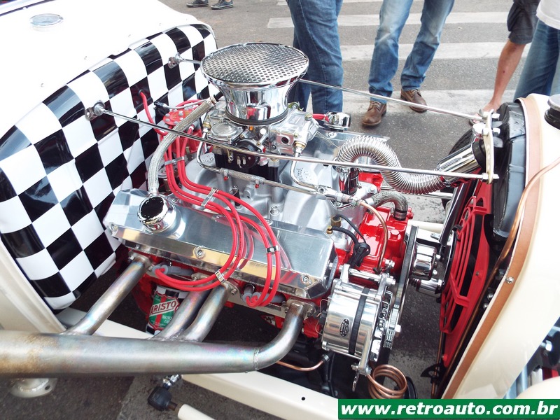 Um Hot Rod com carroceria de plástico reforçado com fibra de vidro e poderoso motor V8.