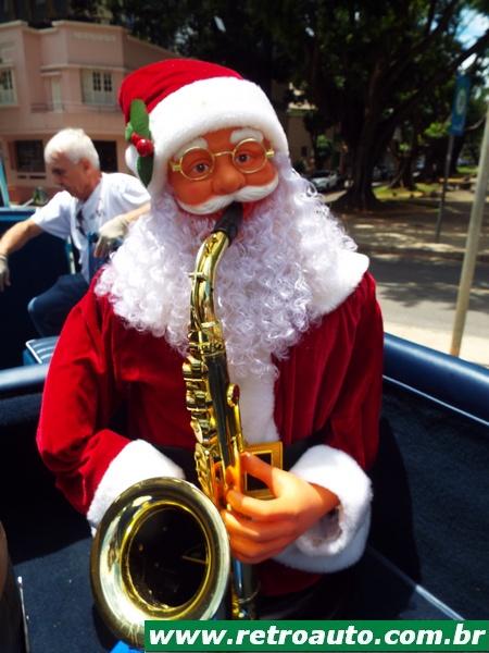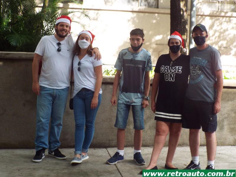 Os colecionadores, com gorros de Papai Noel, se reuniram em frente à sede do Grupo Decisão, um dos pontos de coleta de doações. Cerca de 25 carros antigos fizeram o percurso.